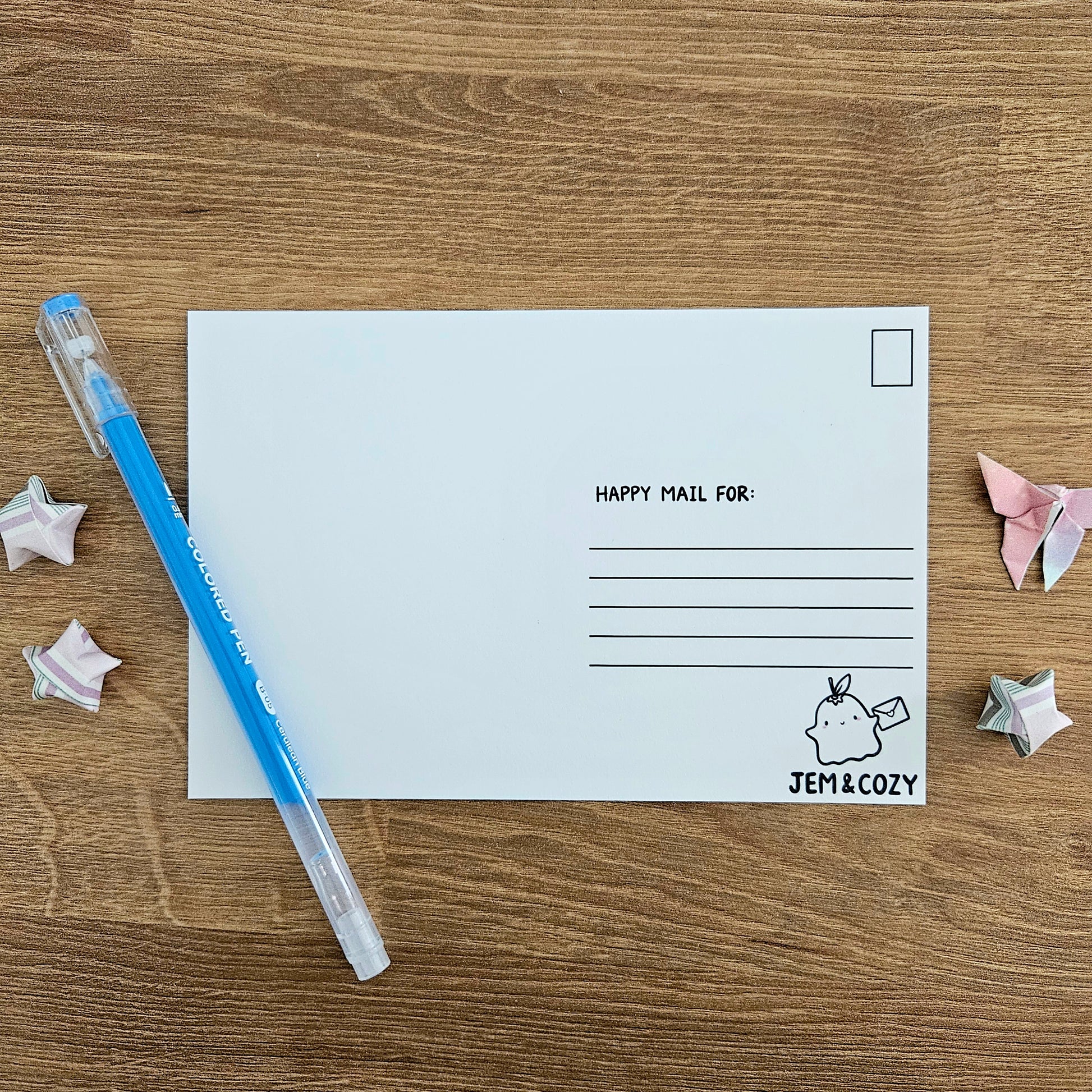 - Uncoated postcard with guidelines and address area on back