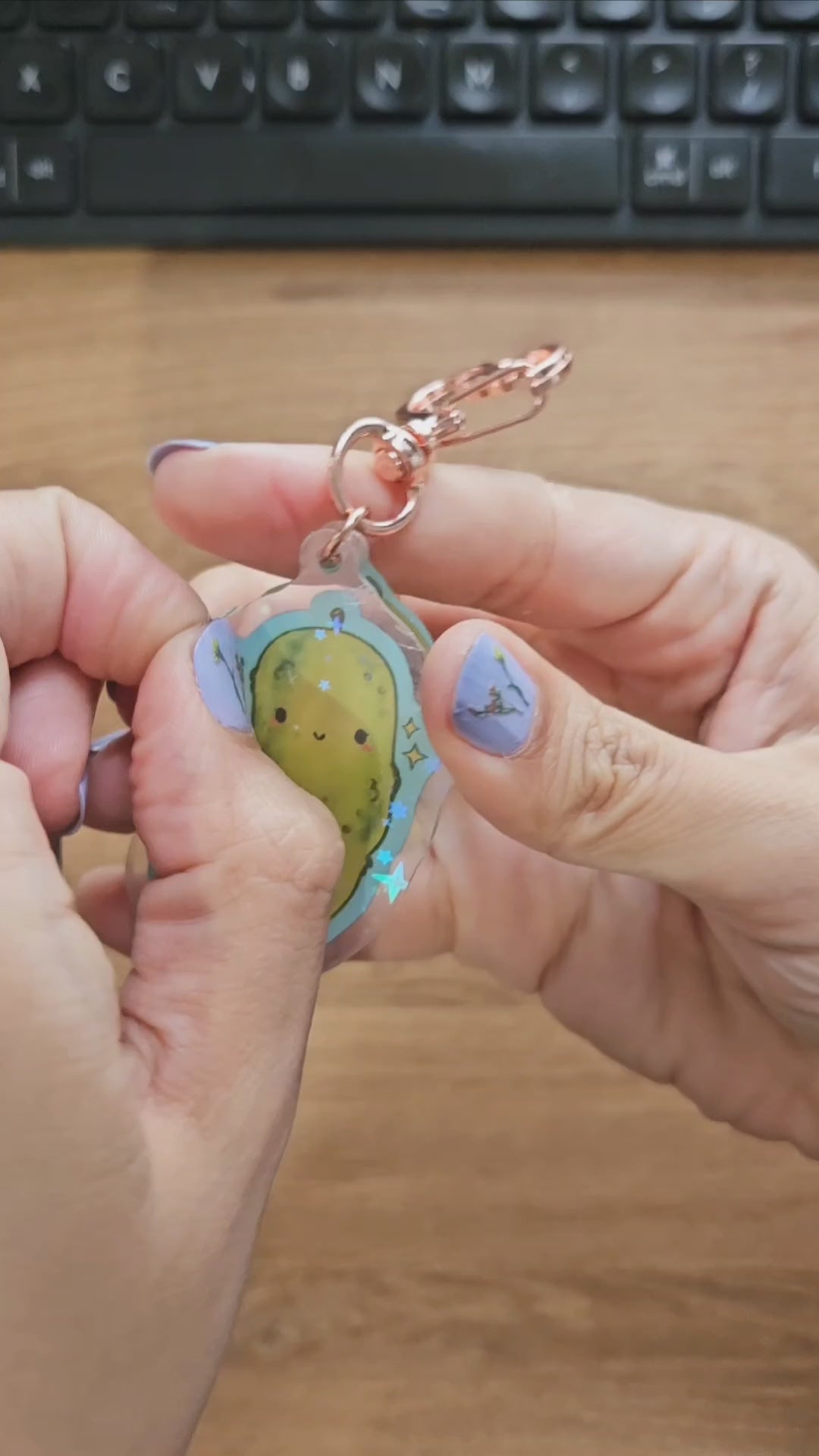 1 single-sided acrylic keychain with an adorable decorative clasp.