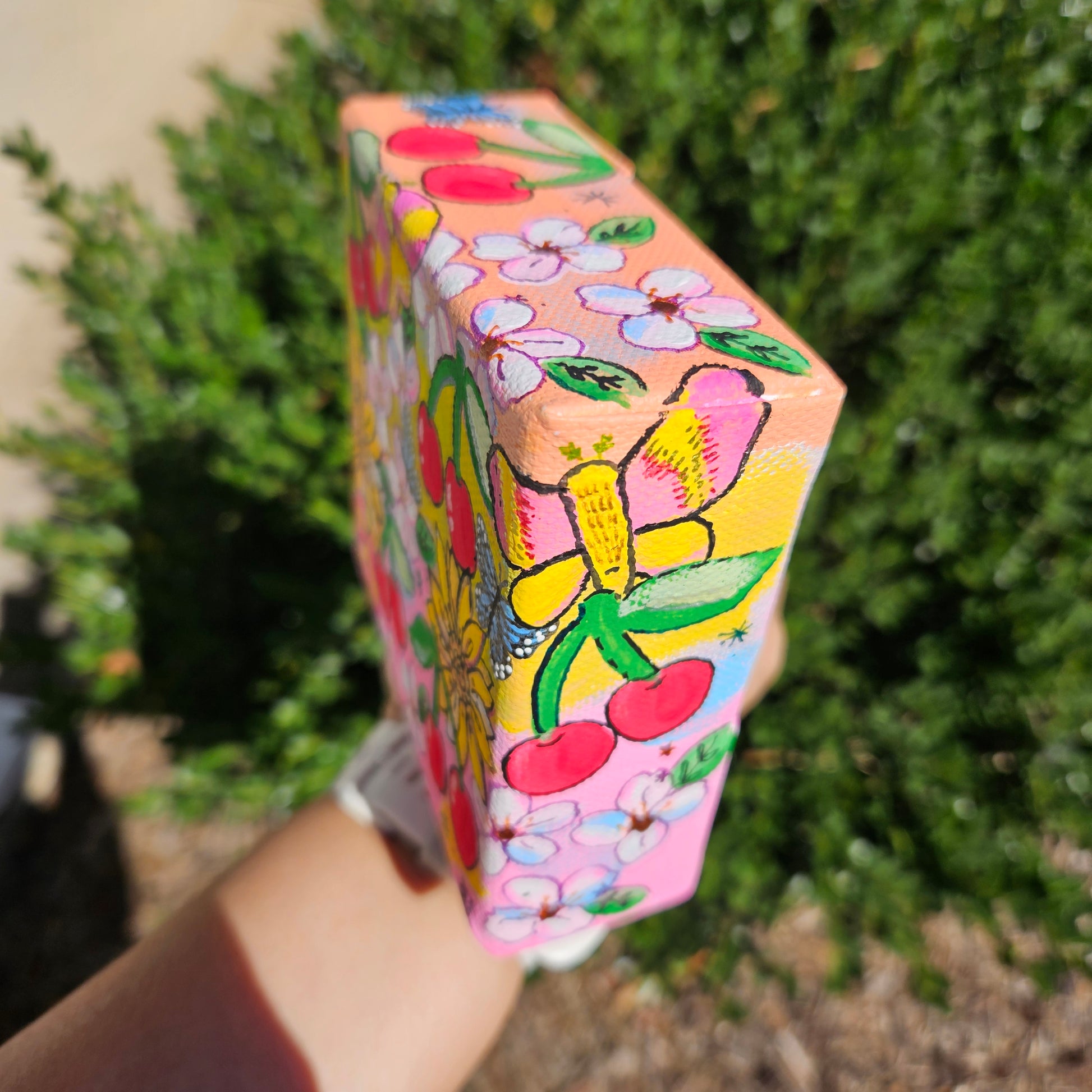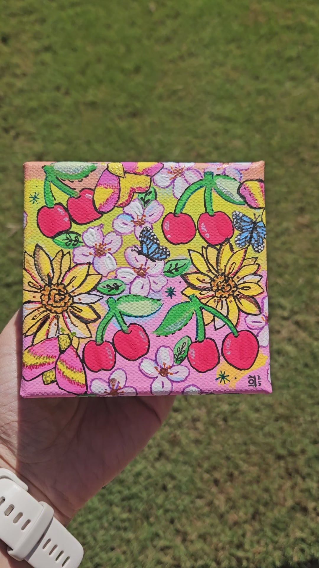 Rosy Maple Garden Acrylic Painting Original Art (4x4")