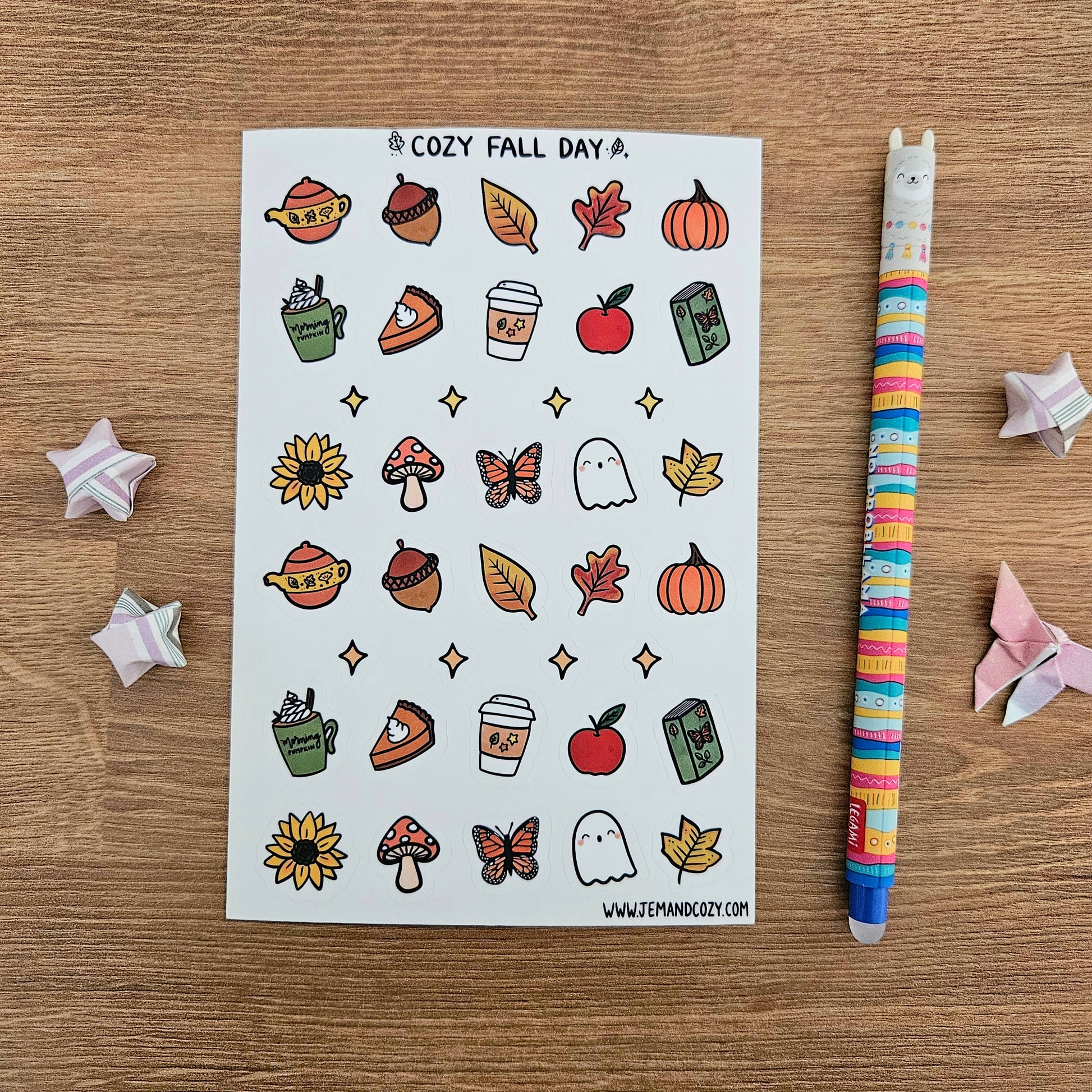 Cozy Fall Day Clear Vinyl Deco Sticker Sheet (4x6")